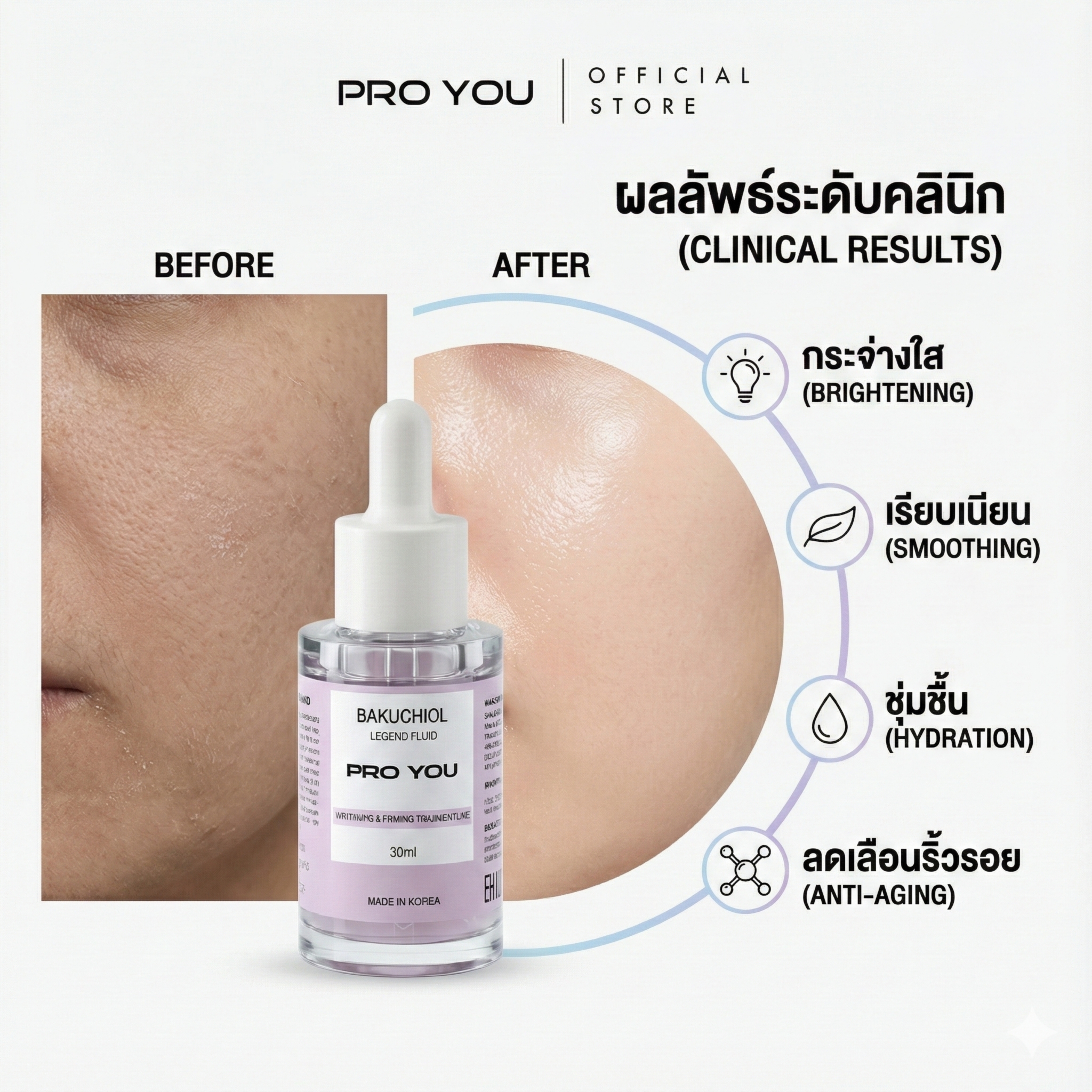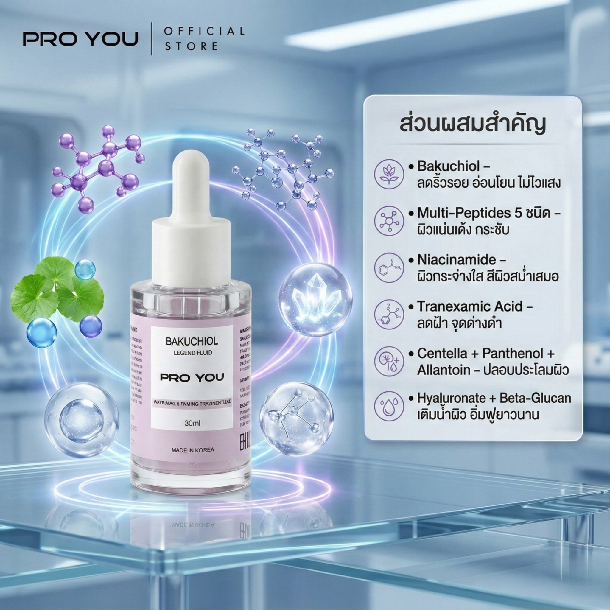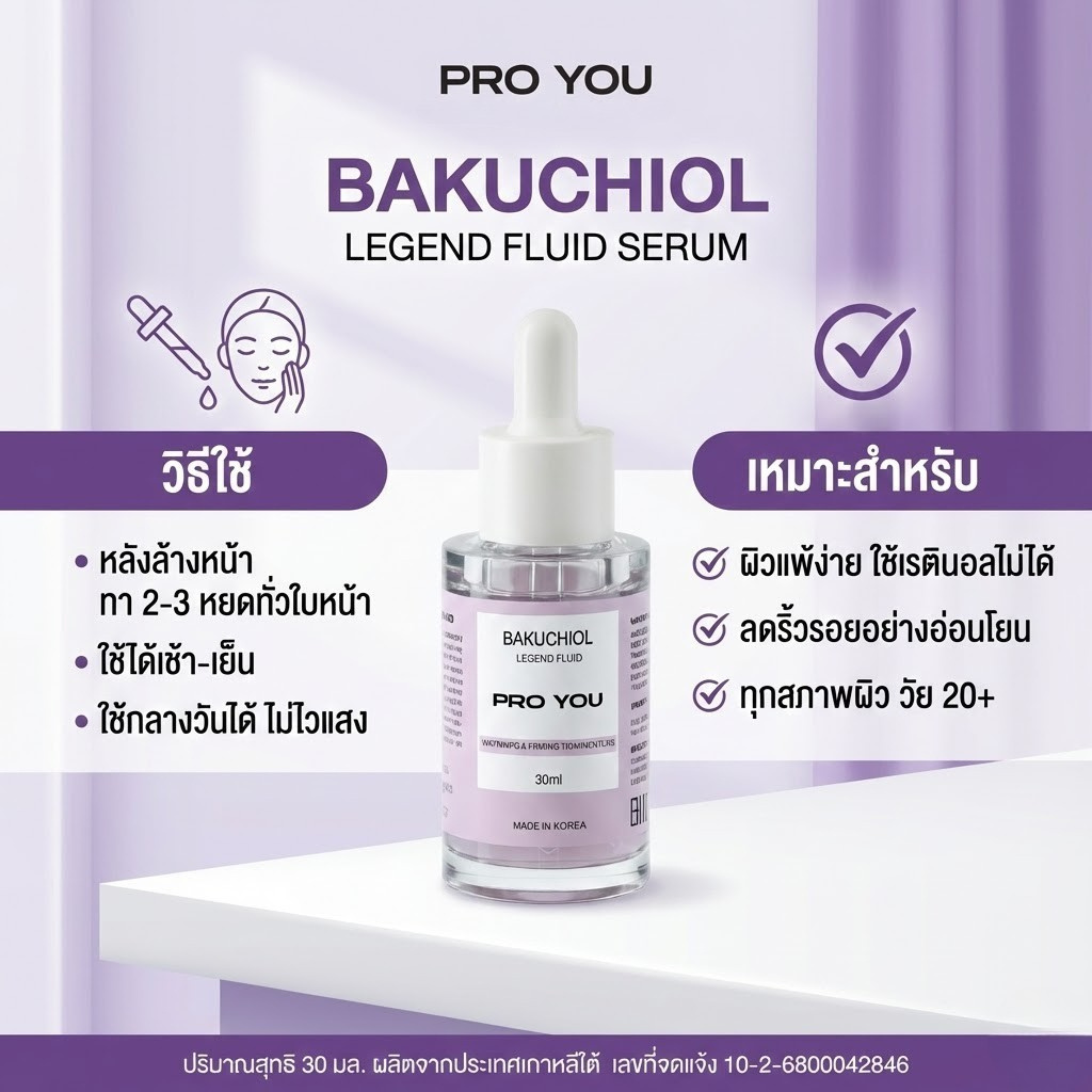 โปรยู เวชสำอางเกาหลี เซรั่มบาคูชิออล ดูแลผิวเรียบเนียน อ่อนโยนต่อผิว เหมาะสำหรับผู้ที่ต้องการดูแลผิวโดยไม่ใช้ Retinol